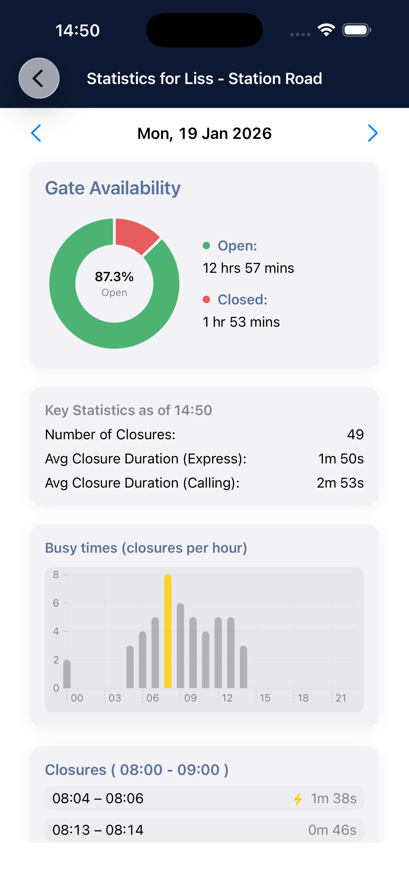 Crossing Dropping has been running for 3 years. In that time, it has become the trusted source of information about the level crossings in our area. Following the signalling changes in Autumn 2025, the app was created to radically enhance the user interface, and make the most of the new data provided by Network Rail. The result; a digital twin of the local railway with historical data presented in statistic format.